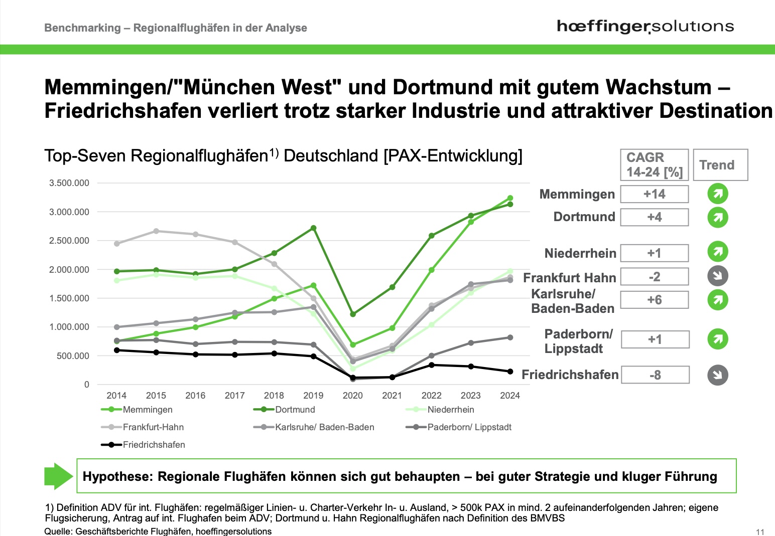 Unsere Studie macht aber deutlich, dass auch diese beiden Flughäfen Potenzial haben. Sie liegen in wirtschaftlich aktiven Regionen, verfügen über vergleichsweise große Einzugsgebiete und könnten mit entsprechenden Investitionen, Direktverbindungen und Vermarktungskonzepten neu durchstarten.